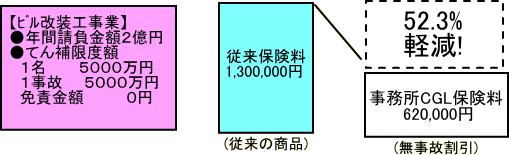 ◎既存の賠償責任保険を自由化による新商品「事業所CGL」で見直しました。